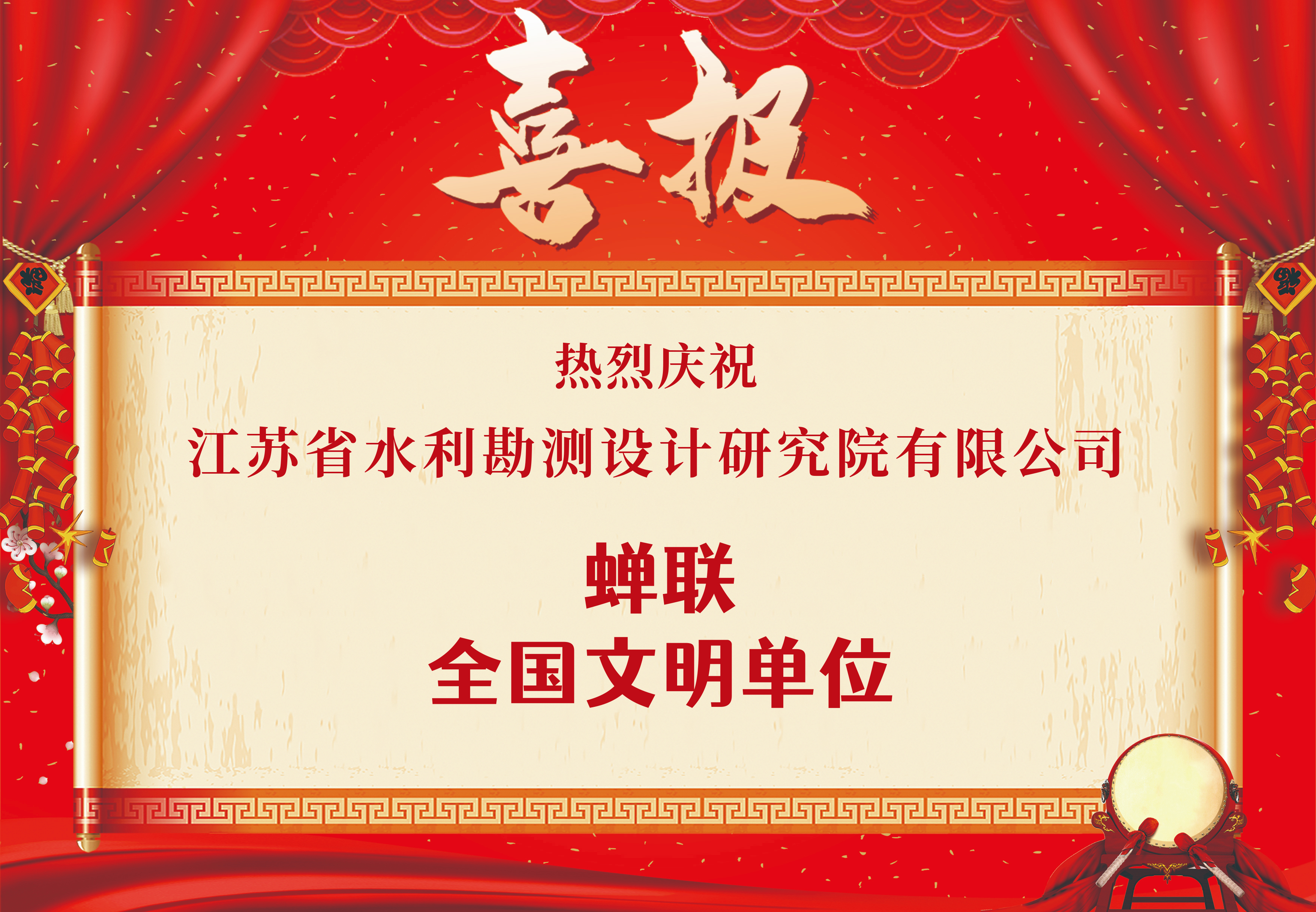 喜報!公司蟬聯(lián)“全國文明單位” 榮譽稱號